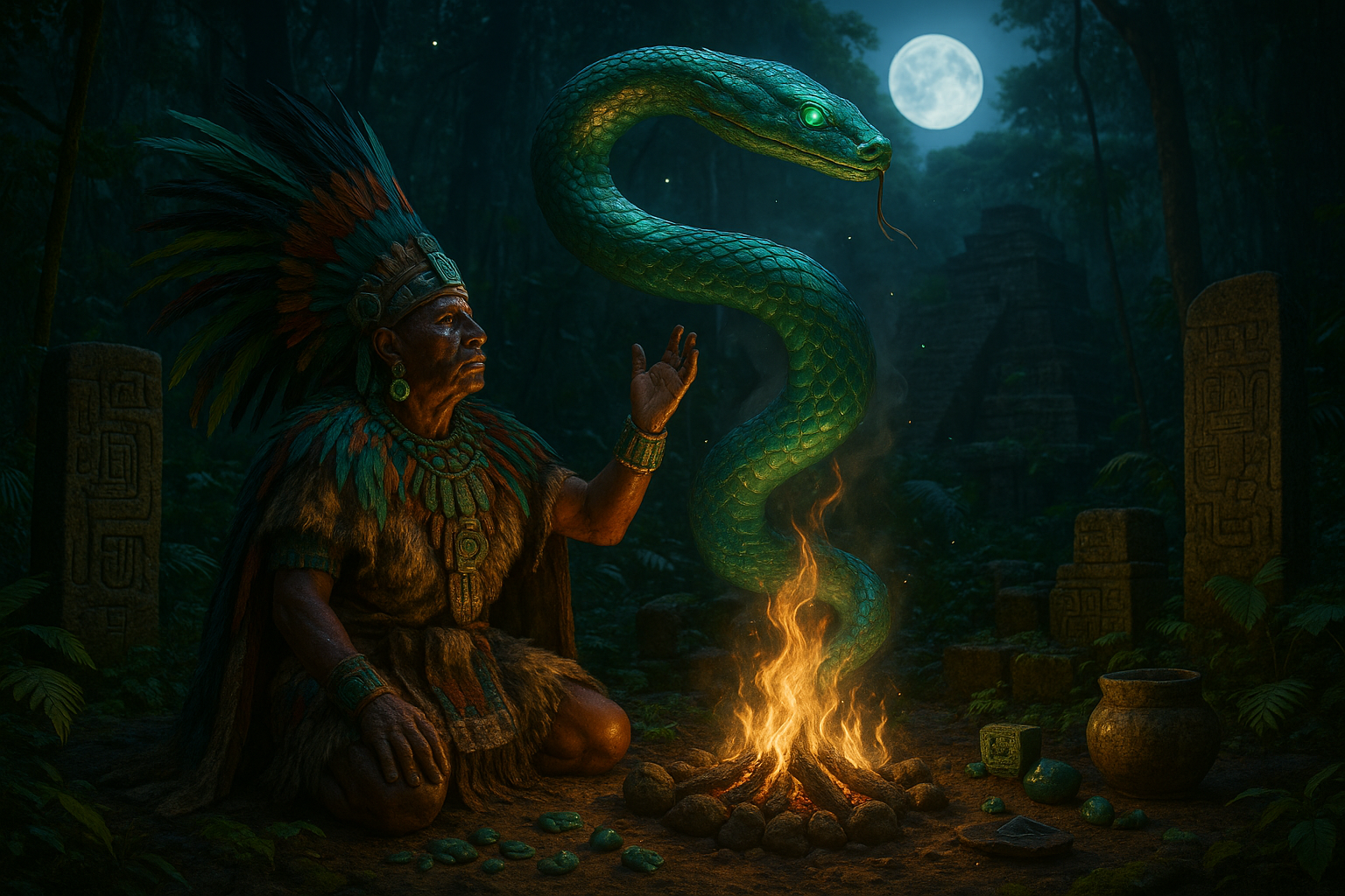 In the dense, verdant heart of the ancient Mayan civilization, a mystical entity slithered through the spiritual and cultural consciousness of